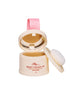 C10-18 Fatty acid triglycerides, Earth wax, beeswax, hydrogenated vegetable oil, polyethylene, caprylic acid/caprylic acid triglyceride, ethyl palmitate, Bismuth oxychloride, CI77499, CI77510, tocopherol, hydroxypropyl ester, rose extract.